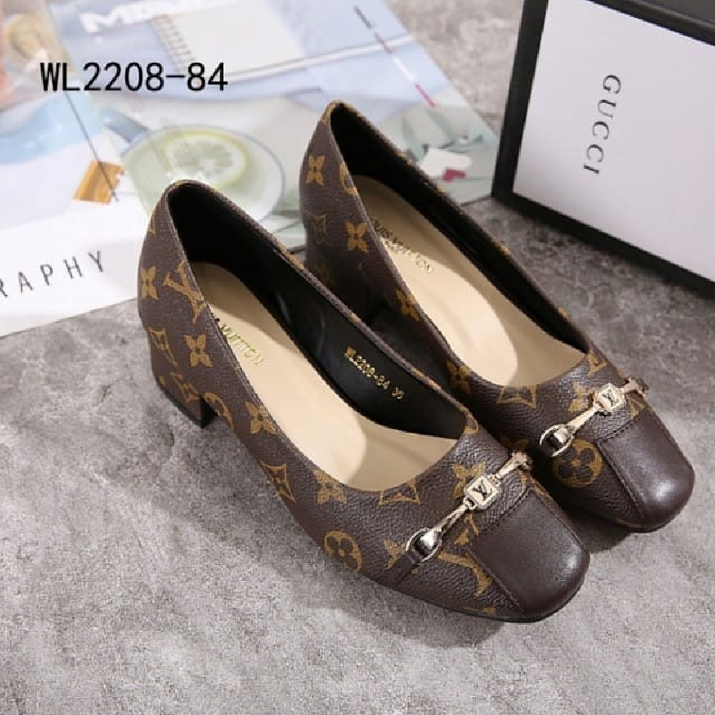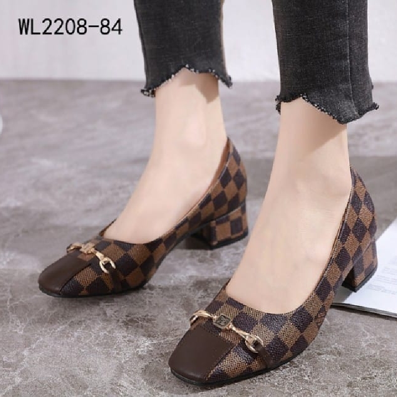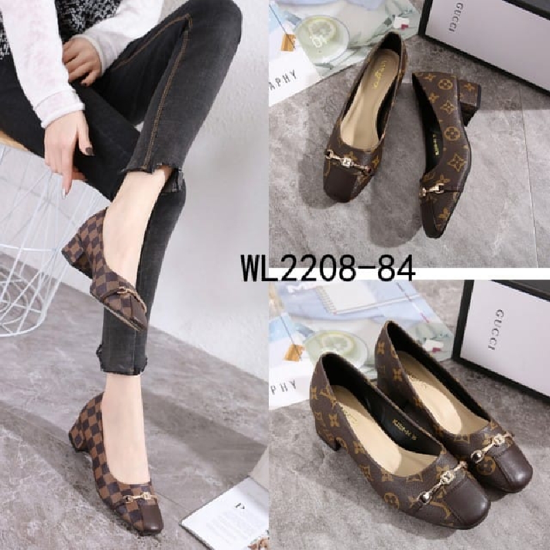 *Sepatu Louis Vuitton Women Shoes Block Heel Pupms WL2208-84 Semi Premium*