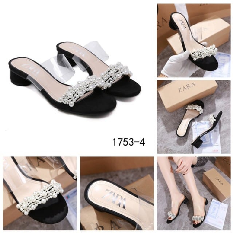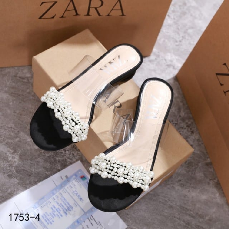 *Sepatu Zara Vynil & Pearl Heeled Sandals Women Fashion 1753-4 Platinum*